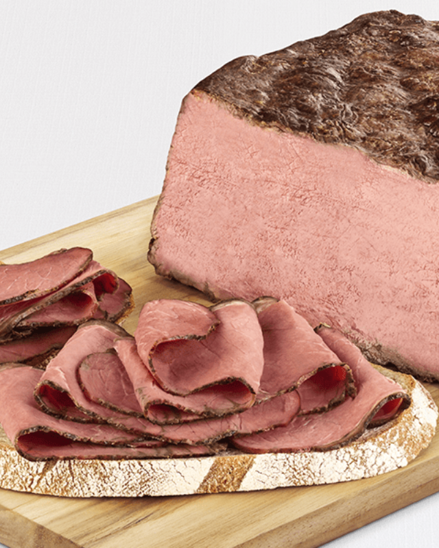 Iguaria da charcutaria, curada lentamente e defumada, adquirindo sabor intenso com toque de especiarias.
