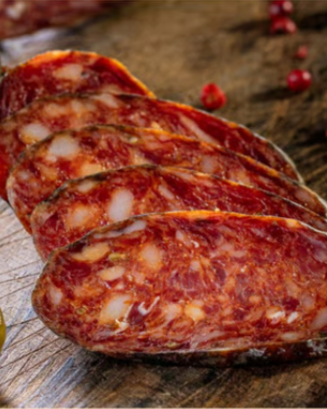Salaminho maturado lentamente, entregando textura firme e sabor intenso de defumado e especiarias.