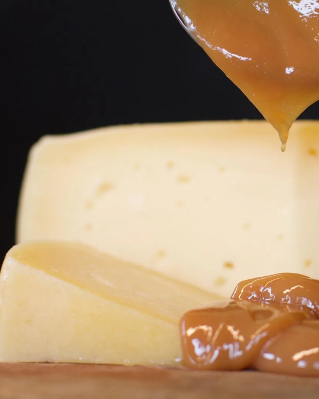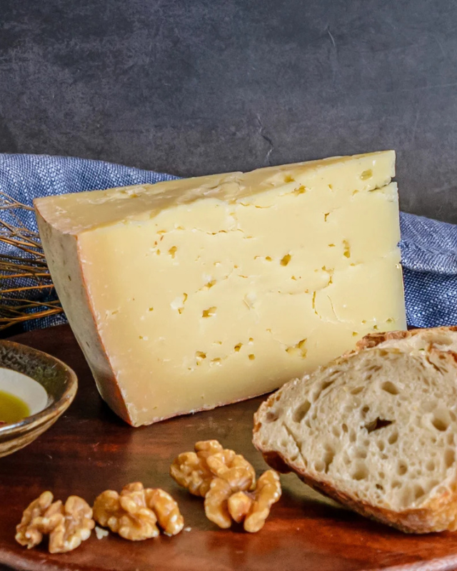 Queijo de longa maturação, textura firme e que equilibra notas doces e picantes.
