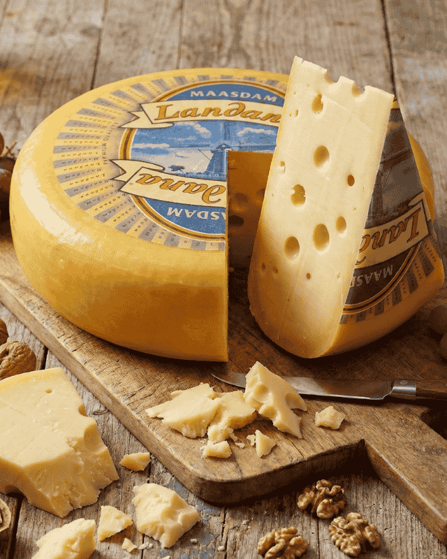 Queijo holândes de sabor marcante, amanteigado e com notas de amêndoas, ideal para servir em lindas tábuas!