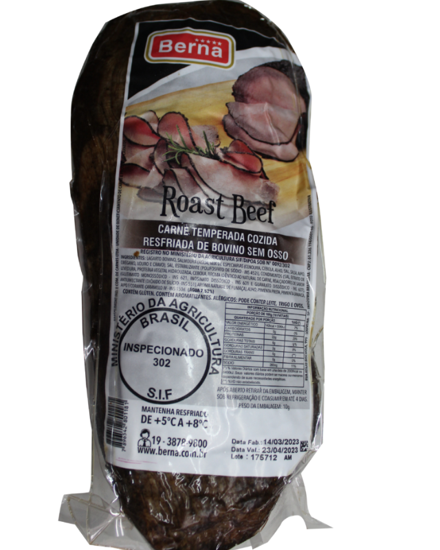 O Roast Beef da Berna é um clássico preparado com carne bovina assada lentamente, preservando o ponto rosado no centro e a suculência característica. Temperado com especiarias delicadas, é ideal para quem busca uma proteína versátil, pronta para servir fria ou levemente aquecida.